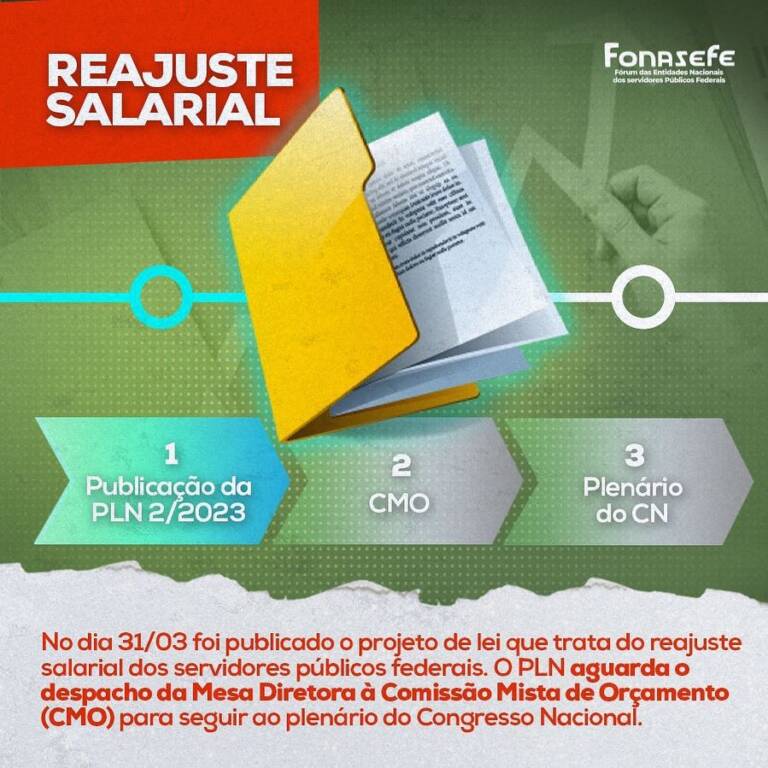 Também no dia 31/03 foi publicado o PLN que trata do reajuste de 9% para o funcionalismo federal. O texto aguarda o despacho da Mesa Diretora à Comissão Mista de Orçamento (CMO) para depois seguir ao Plenária do Congresso Nacional.
