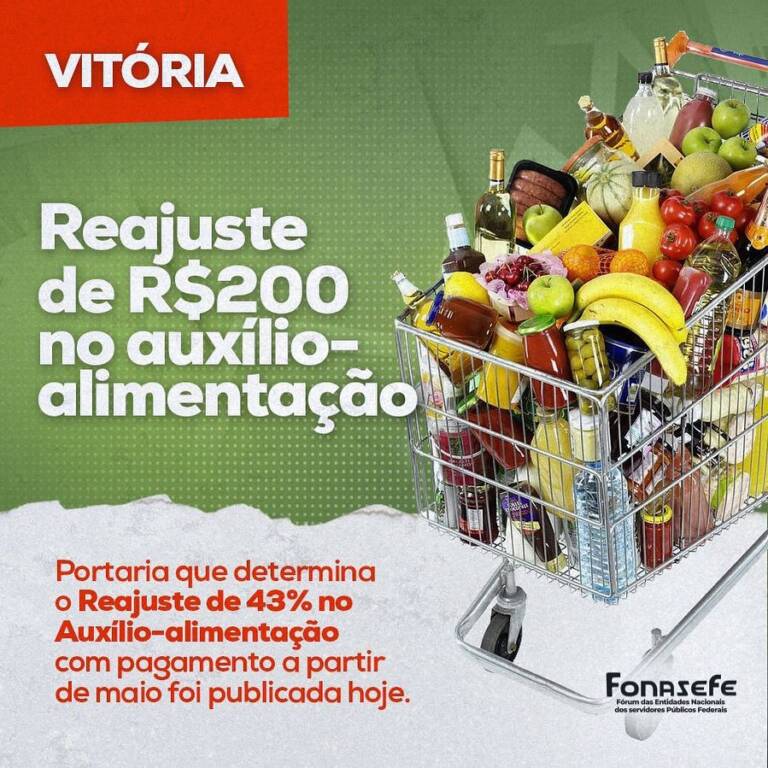 Aumento de R$ 200,00 no Auxílio Alimentação já foi publicado
