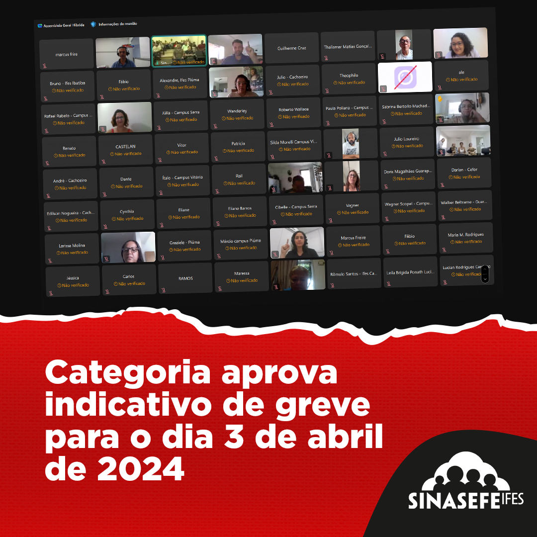 Categoria aprova indicativo de greve para o dia 3 de abril de 2024