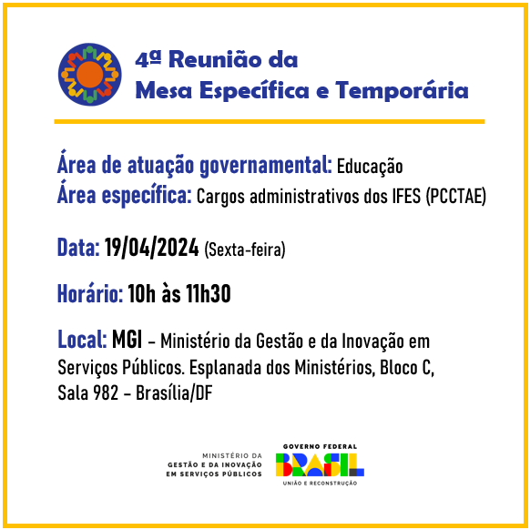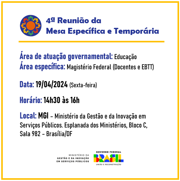 Na próxima sexta-feira (19/04), o Governo Lula vai nos receber em duas reuniões das Mesas Específicas e Temporárias, que debatem as reestruturações das carreiras TAE e docente.