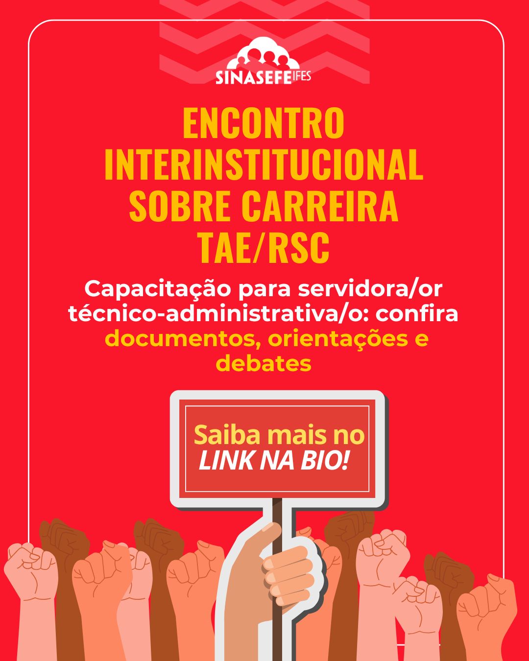 O Encontro Interinstitucional sobre Carreira TAE/RSC foi realizado no dia 15 de outubro, das 13h às 17h, no teatro do Campus Vitória, fruto de uma parceria entre o Sinasefe Seção Ifes e o Ifes Campus Vitória.