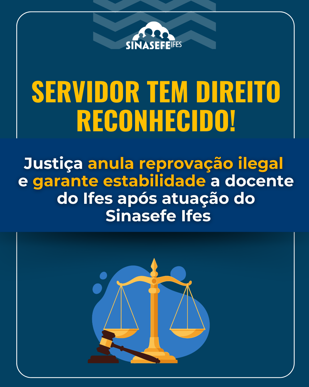 O Sinasefe Ifes, por meio de sua assessoria jurídica, obteve na Justiça a anulação da decisão que reprovou ilegalmente um sindicalizado em estágio probatório. Com a sentença, foi reconhecida sua estabilidade e determinado seu retorno ao quadro docente do Ifes.