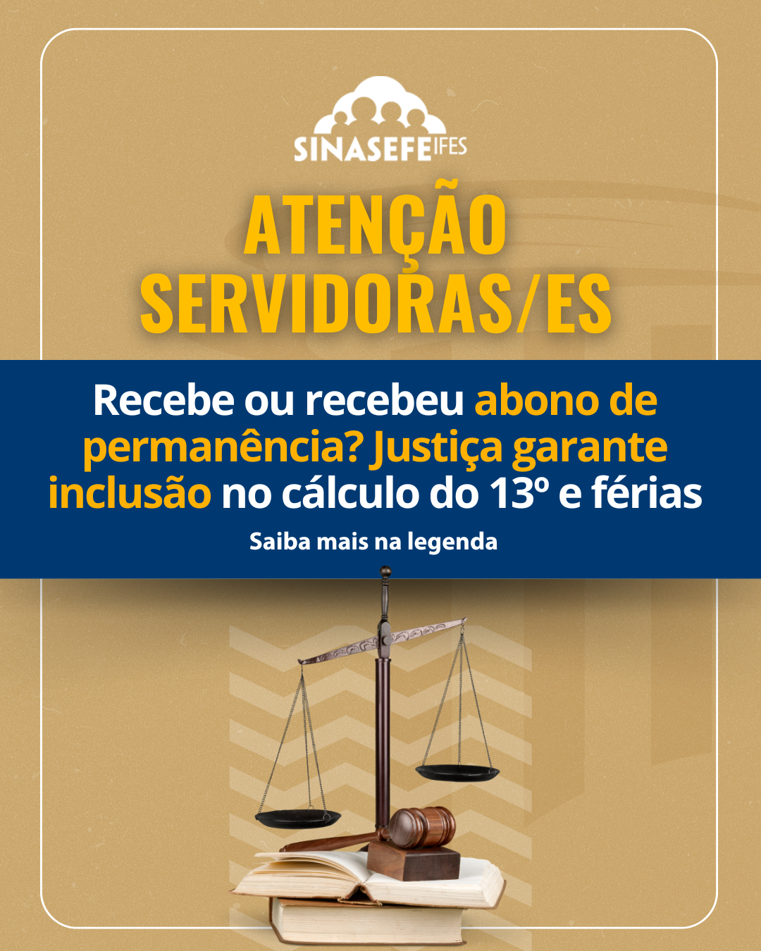 Mesmo com as decisões já proferidas, a inclusão do abono de permanência na base de cálculo não ocorre de forma automática. Por isso, servidoras/es que estejam nessa situação devem procurar a assessoria jurídica do Sinasefe Ifes para verificar o direito à correção dos pagamentos e ao recebimento dos valores retroativos.